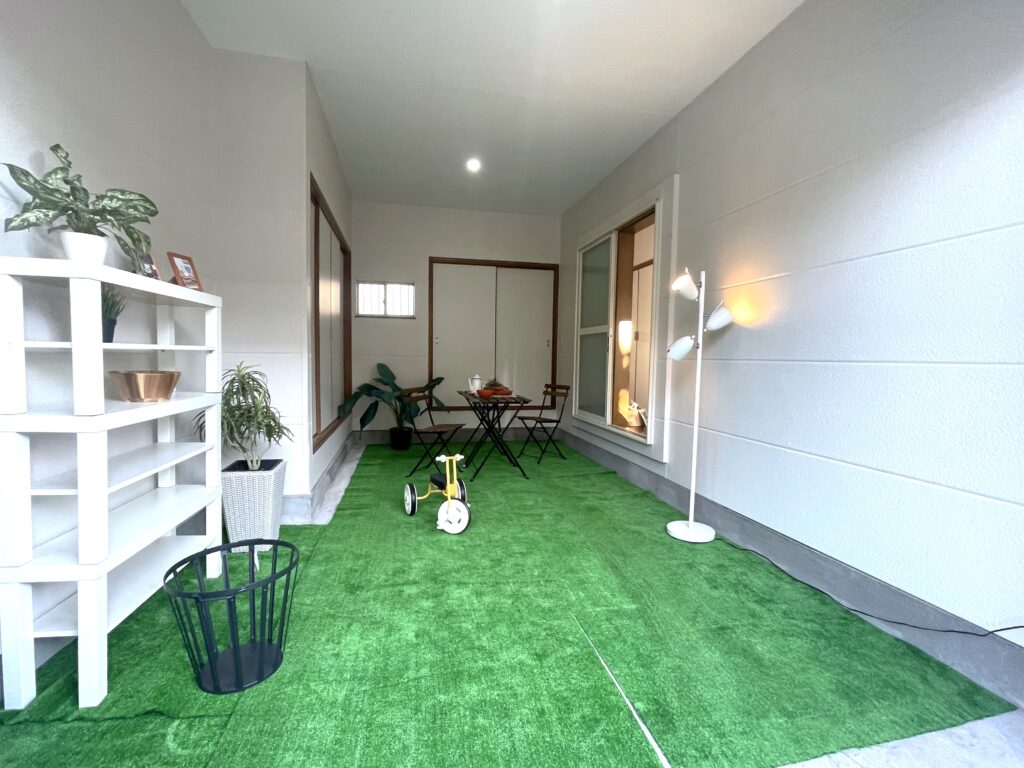 車は手前の外部に駐車が可能なので、この空間は子どもの遊びスペースや趣味の空間としても利用できます。